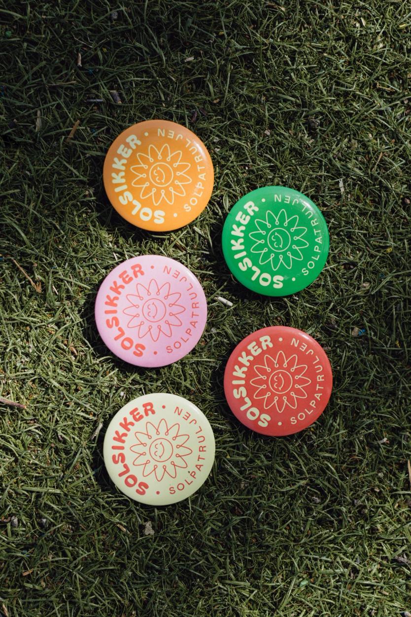 - En knapp til alle barn som bevis på at de har blitt en del av Solsikker – Patruljen